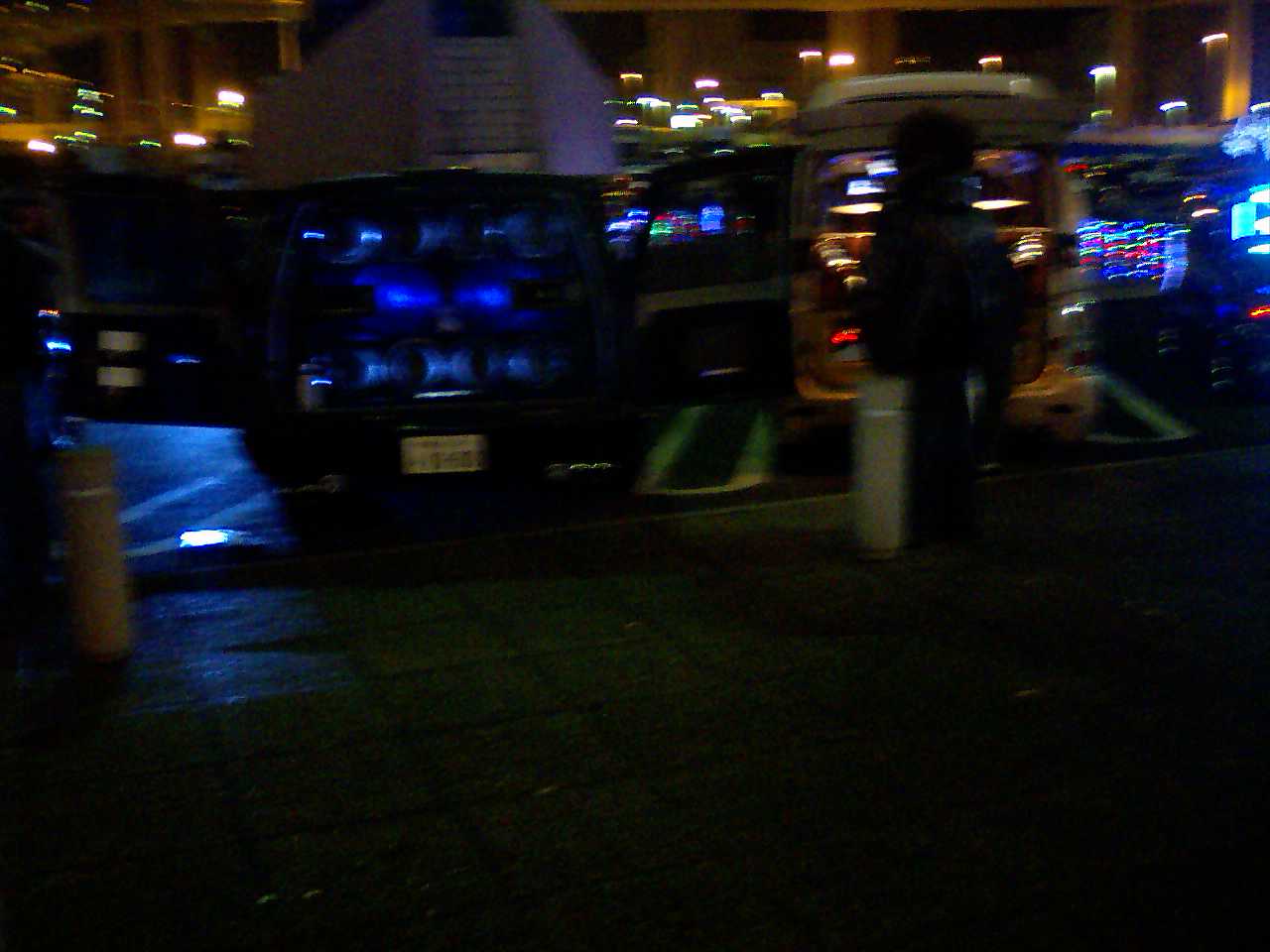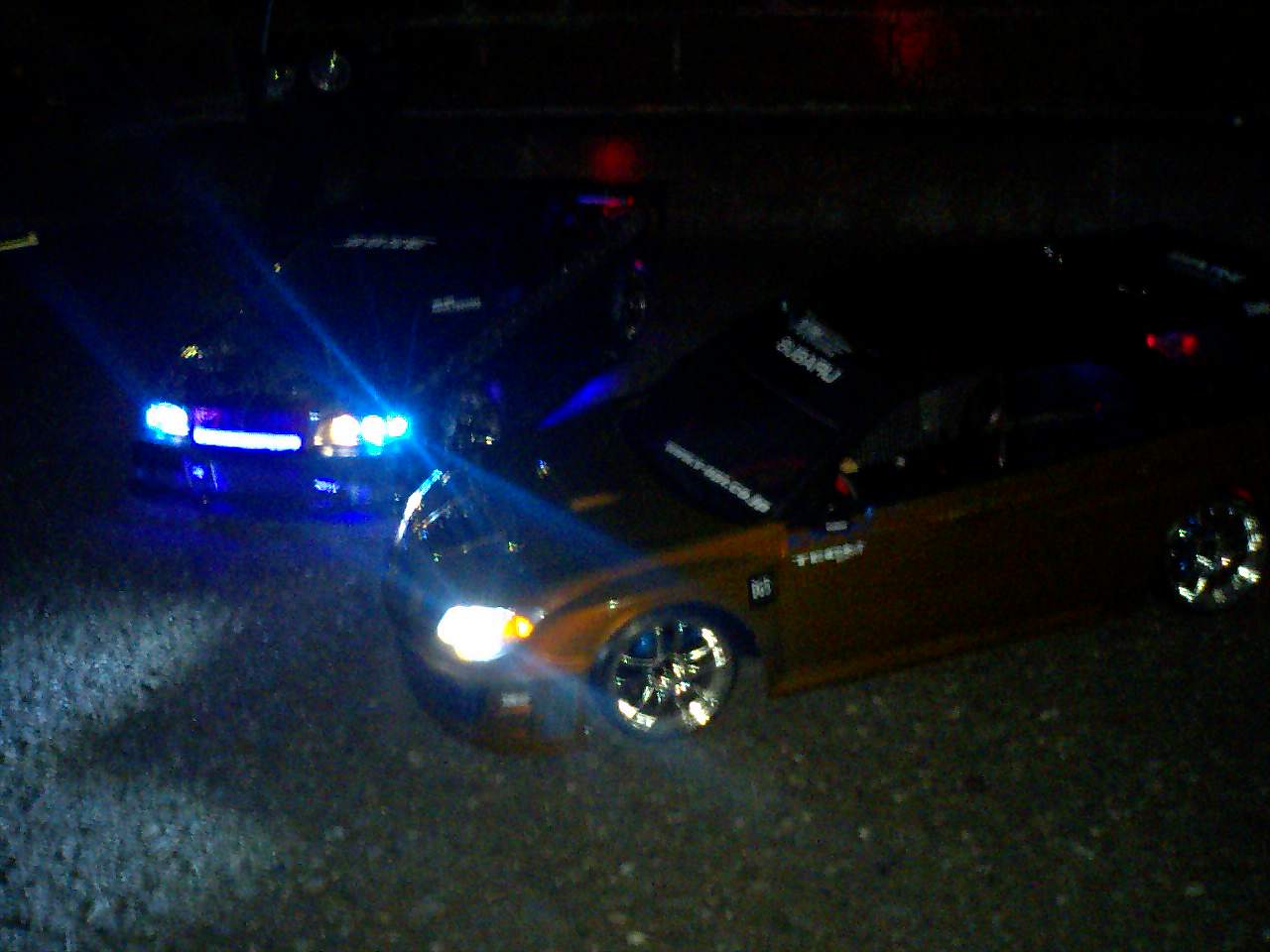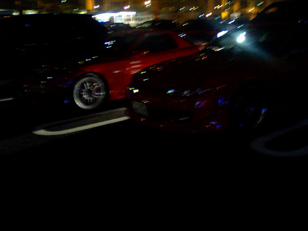 ピンクっぽいのはステップワゴンで黒くて青く輝いてんのはシボレーのなんかで