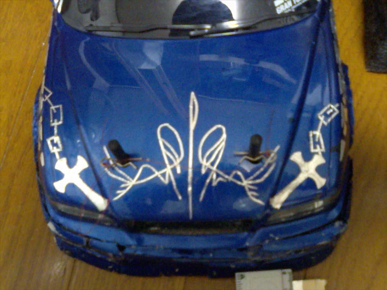 まぁまぁ大幅にアレンジした自慢のボンネットバイナル。真ん中のは前のと見比